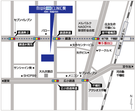 JR千種駅、地下鉄東山線千種駅 西へ約300m 車道通り沿い、茶色のマンション「M-stage Aoi」の1階です。 地下鉄東山線千種駅すぐ近く、千種区今池周辺や中区栄からの通勤、通学の途中に便利です。